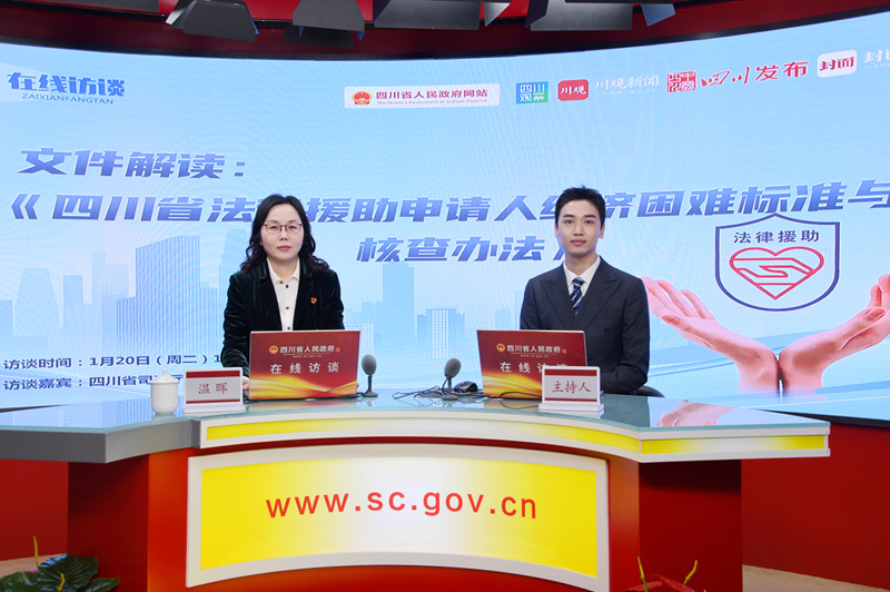 最新出台的《四川省法律援助申请人经济困难标准与核查办法》将于2026年2月1日起施行,有效期5年。近日,四川省司法厅二级巡视员温晖走进省政府网站在线访谈直播间,详细解读文件并与广大网友进行交流。