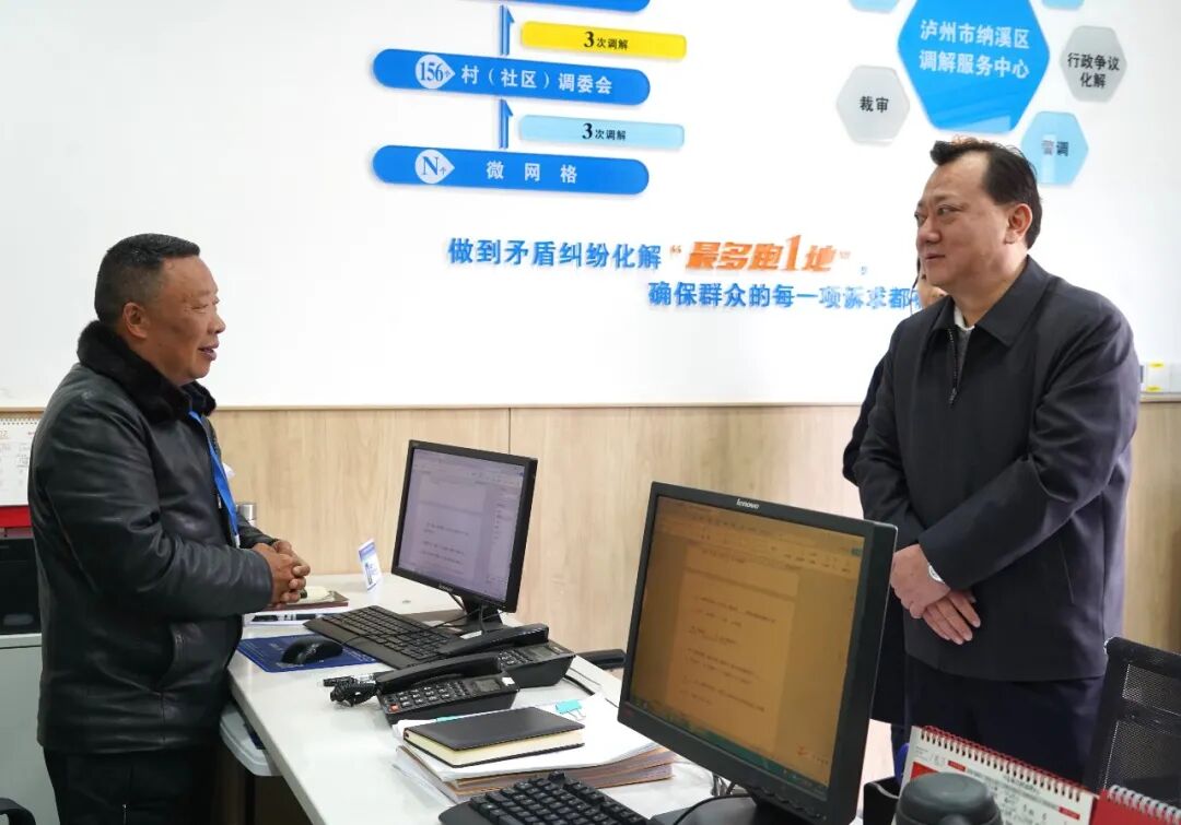 李丹一行先后来到泸州市公共法律服务中心、城市大脑、纳溪区综治中心和宜宾市司法局等地,了解公共法律服务、规范涉企行政执法、法律服务项目建设和纠纷排查化解等工作开展情况,看望慰问基层干部职工。李丹首先为大家送上节日慰问和新春祝福,对大家辛勤工作取得的成绩表示肯定,勉励大家在新的一年里,保持龙马精神,以“马上就办”的工作作风,创造“马到成功”的业绩。