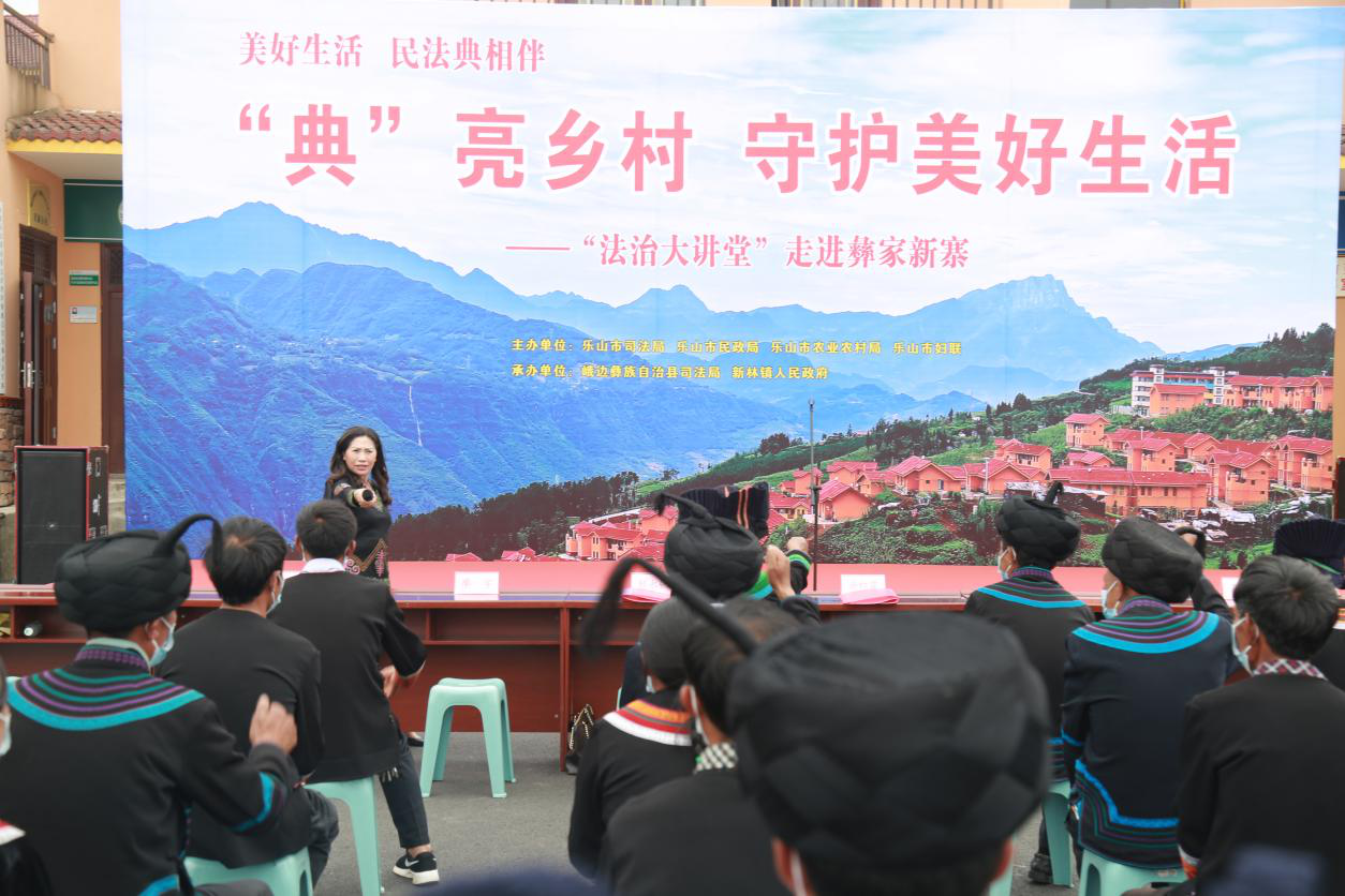 “乡村要振兴,法治必先行。”位于乐山市峨边彝族自治县新林镇的茗新村,2025年由大小凉山8个县的1200多名彝族群众自主迁居于此组成,因多地居民混居,管理难度较大。经过多次调研,峨边彝族自治县司法局在县委、县政府支持和司法厅、市司法局指导下,将茗新村确定为“彝家·法治新寨”创建点,探索以“党建+”模式绘就法治乡村新图景。