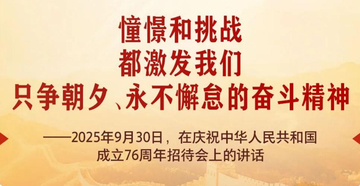今年国庆招待会上,习近平总书记的话深情而豪迈:“实现中华民族伟大复兴是前无古人的伟大事业。憧憬和挑战,都激发我们只争朝夕、永不懈怠的奋斗精神。”